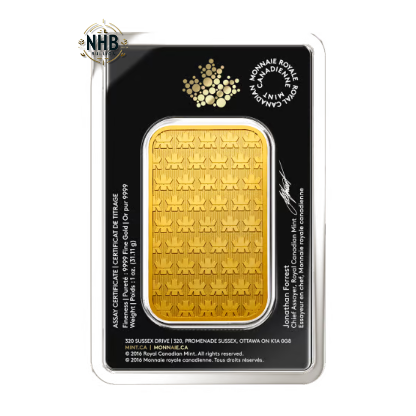 - Obverse: Features the Royal Canadian Mint logo along with the bar's weight, purity, and unique serial number, ensuring authenticity and traceability.